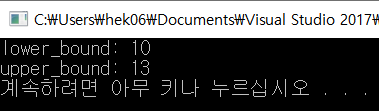 cout << "arr에 10은 " << upper_bound(arr, arr + 10, 10) - lower_bound(arr, arr + 10, 10) << "개가 있다" << endl;