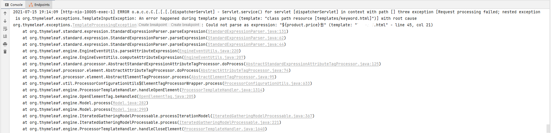 org.thymeleaf.exceptions.TemplateProcessingException: Could not parse as expression: "${product.price}원"