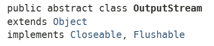 OutputStream도 마찬가지로 추상클래스이고 Closeable의 구현 클래스인 것을 볼 수 있다. 한 가지 다른 것은 Flushable의 구현 클래스라는 것이다. 뒤에서 배우겠지만 출력 스트림은 flush를 해줘야 한다.