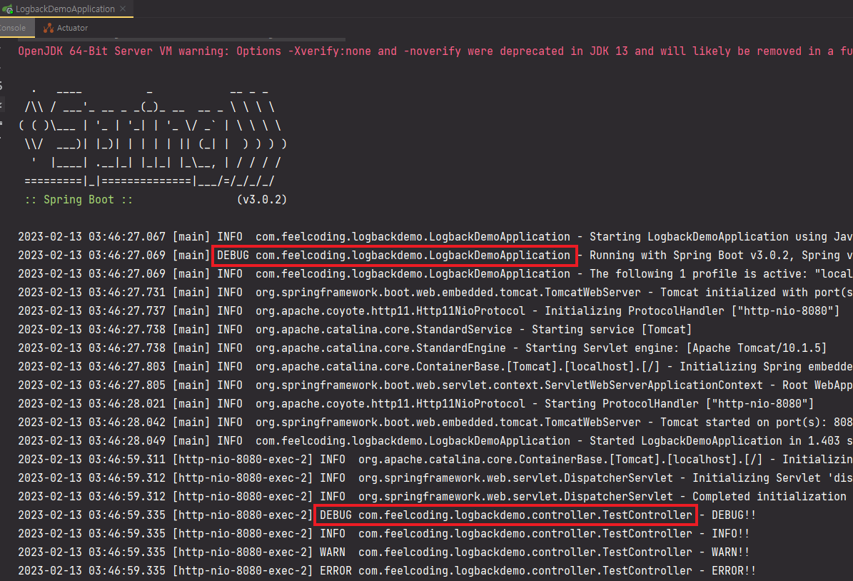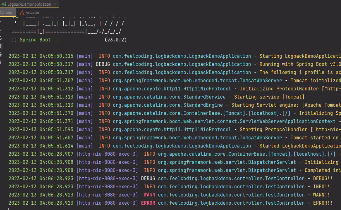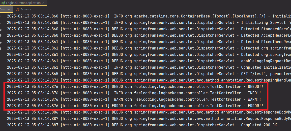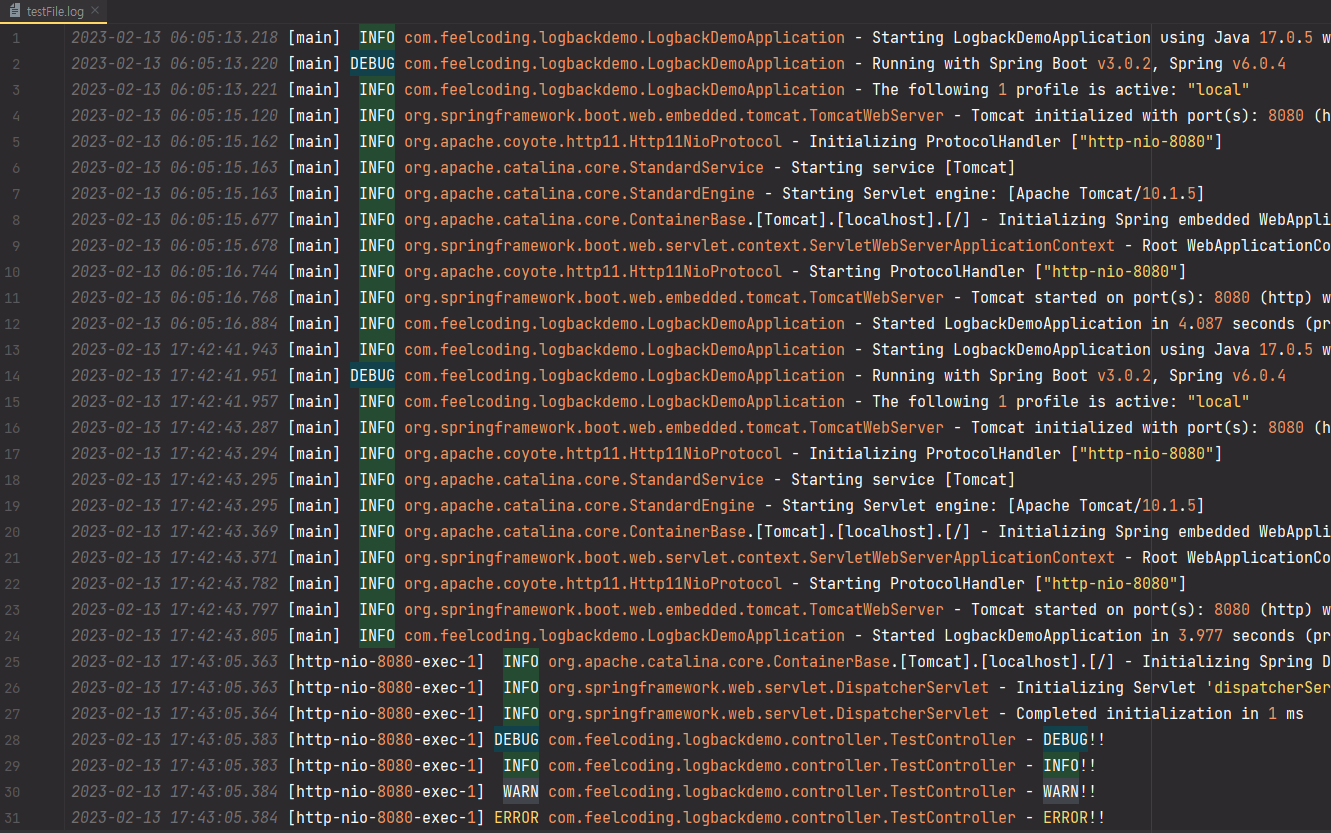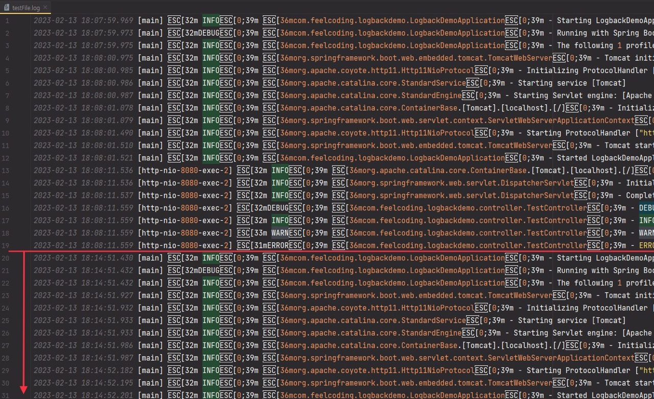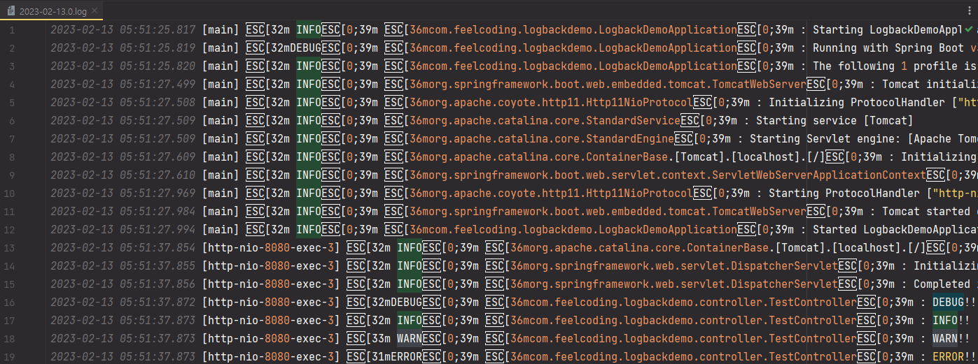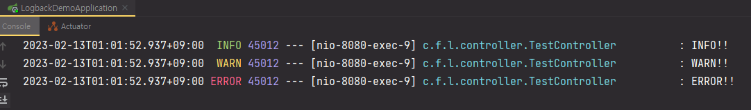그런데 INFO, WARN, ERROR 등 로그 레벨을 나타내는 글자 색은 아까 아무런 설정을 해주지 않았을 때의 색이 더 예쁜 것 같은데... 바꿀 수 없을까요?