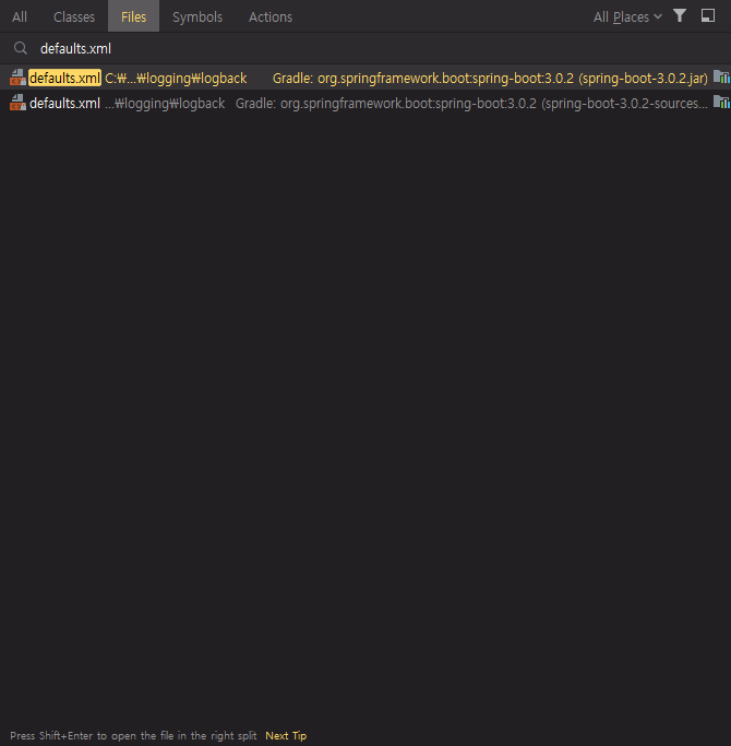 Windows 사용자는 ctrl + n, Mac OS 사용자는 cmd + o를 누르고 우측 상단에 범위를 Files 탭에서 base.xml을 검색해봅시다. (base.xml이라고 입력하면 자동으로 범위가 All Places로 바뀔 것인데, 만약 나오지 않는다면 우측 상단의 범위를 All Places로 수정해보세요.)