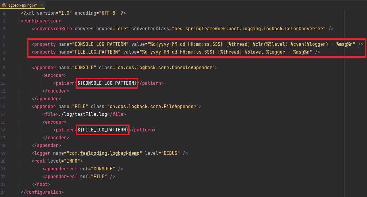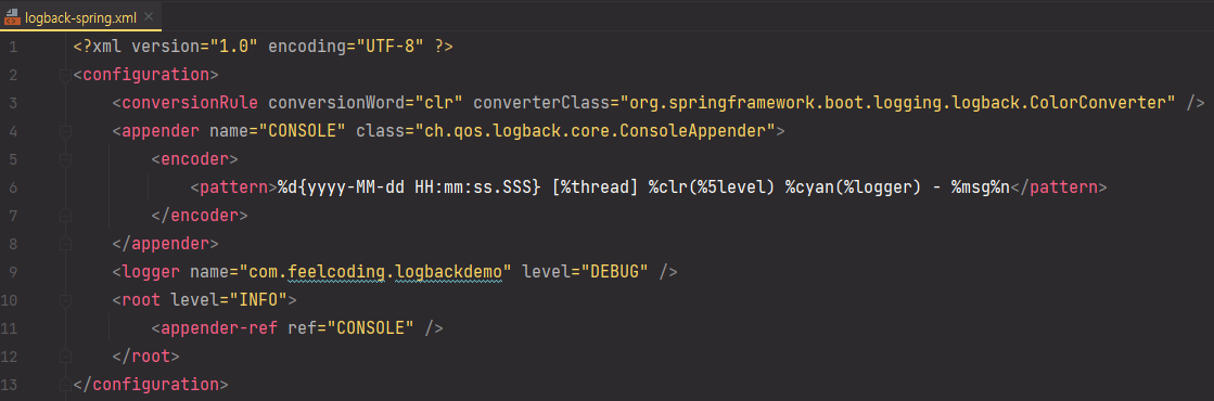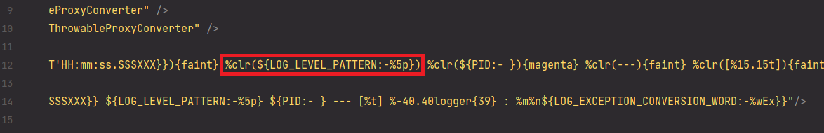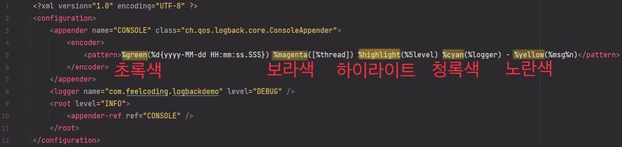 로그 레벨을 지정하는 부분을 clr이라는 색으로 지정한 것을 볼 수 있습니다.