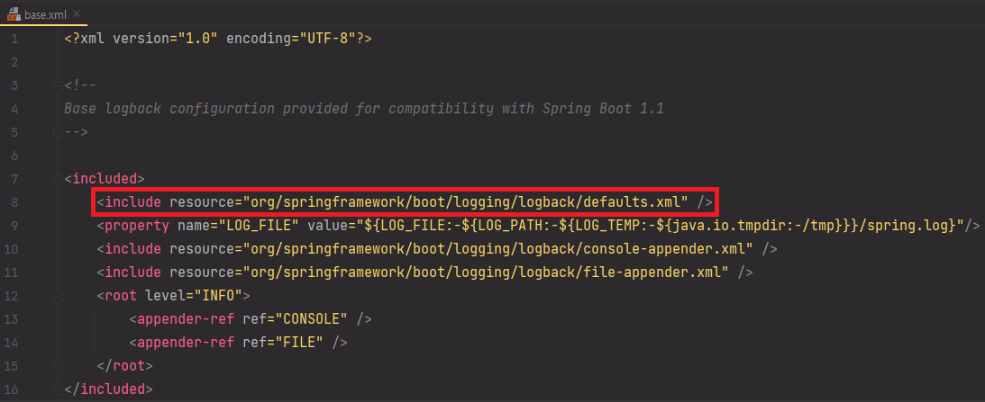 defaults.xml 파일을 include 했다는 것을 알 수 있습니다.