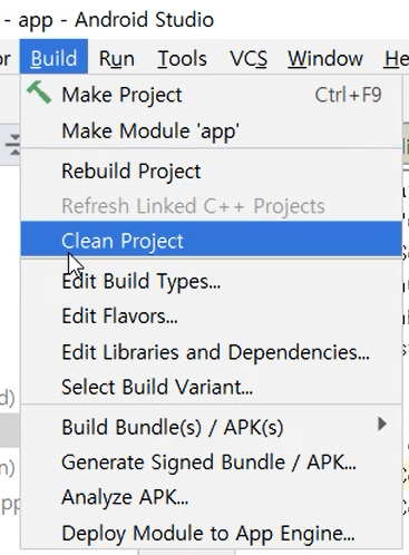 다른 사람들도 그런지는 모르겠지만 나는 이런 일이 자주 발생한다. 왜 그런지 이유는 모르겠다. 안드로이드 스튜디오의 버그인 것 같다.