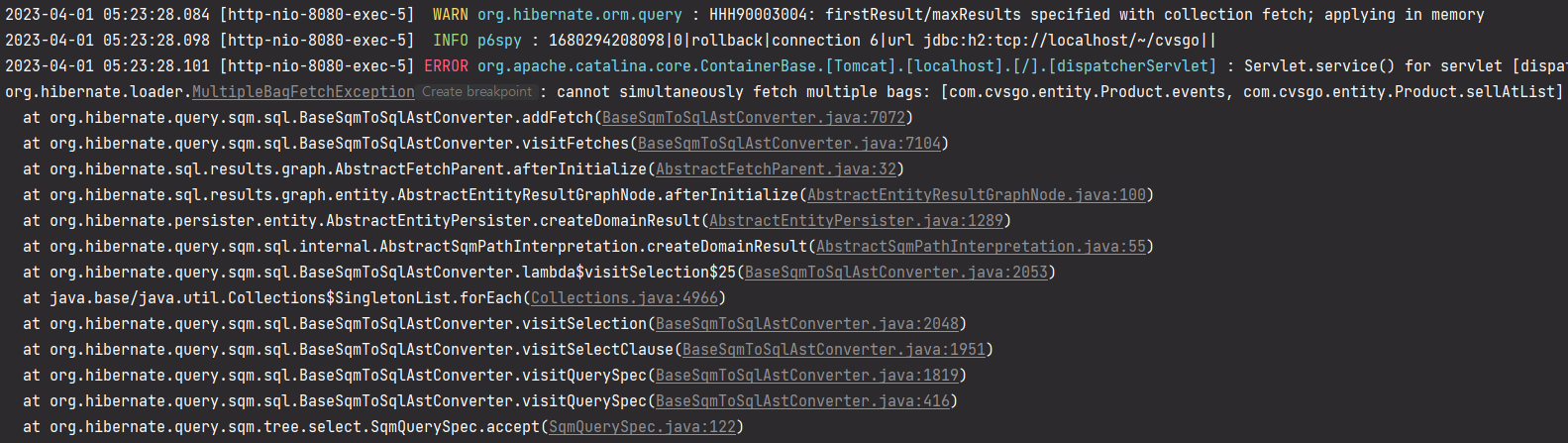 제가 처음으로 시도했던 방법은 Product 엔티티 안에 OneToMany로 List<Event> events, List<SellAt> sellAtList를 만들고 Product 엔티티를 sellAtList, events와 fetch join 하여 조회하는 방법이었습니다.