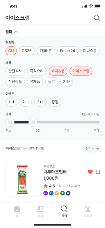 - 해당 상품을 판매하는 편의점 + 해당 편의점의 행사 정보