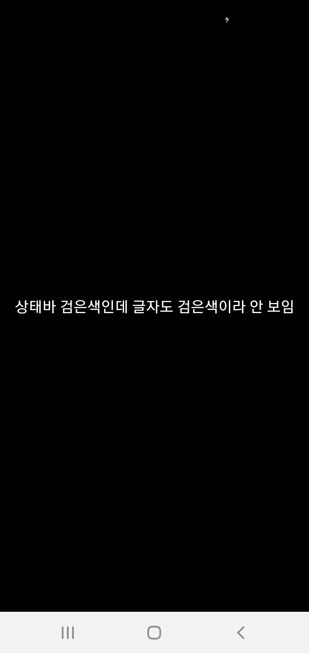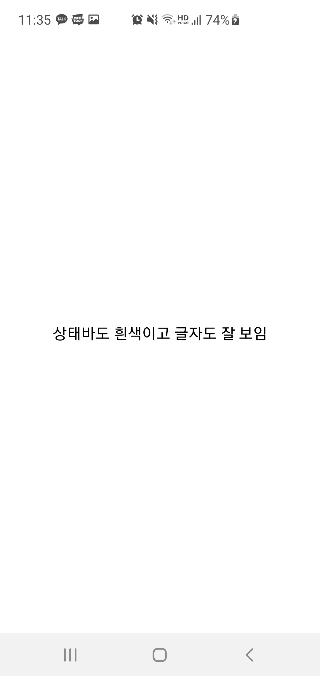 상태바의 배경색은 흰색이 되었지만 글자도 흰색이라 글자가 잘 보이지 않는 것을 볼 수 있다.