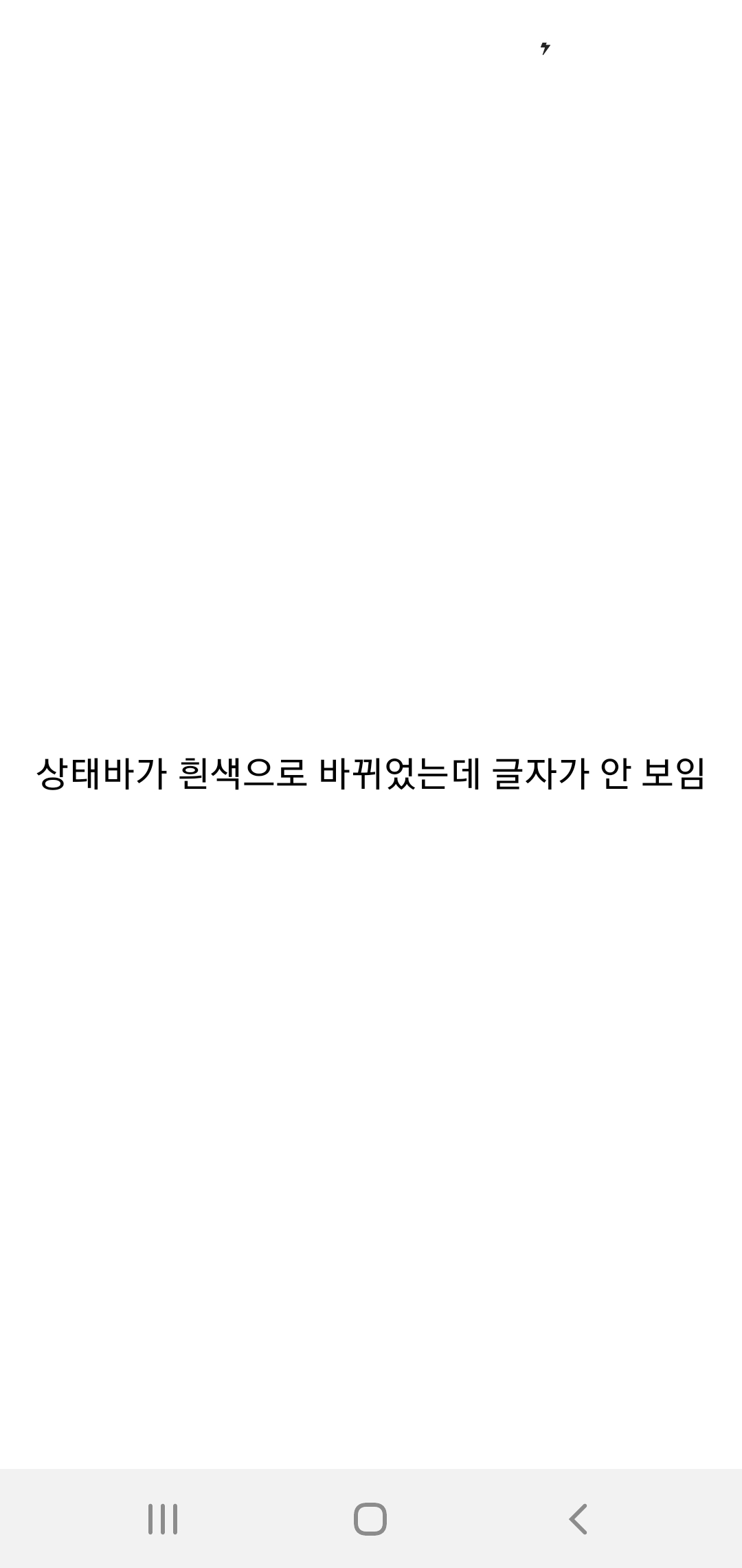 상태바의 배경색은 흰색이 되었지만 글자도 흰색이라 글자가 잘 보이지 않는 것을 볼 수 있다.