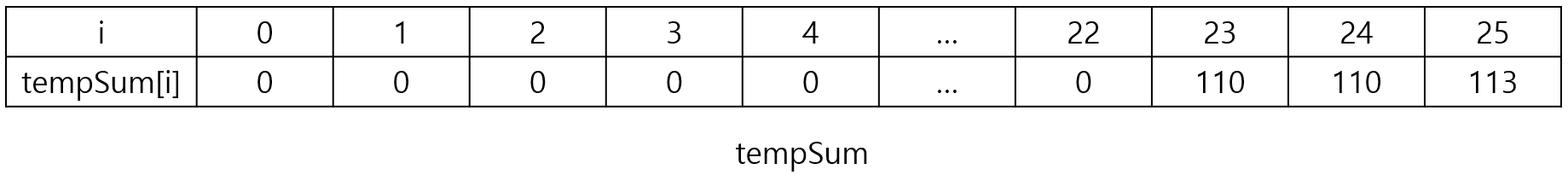 그 후 tempSum을 오름차순 정렬하면 다음과 같을 것이다.