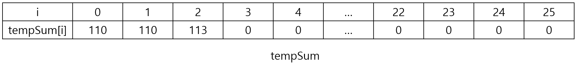 이제 alphabetCount를 이용하여 tempSum을 채운다.