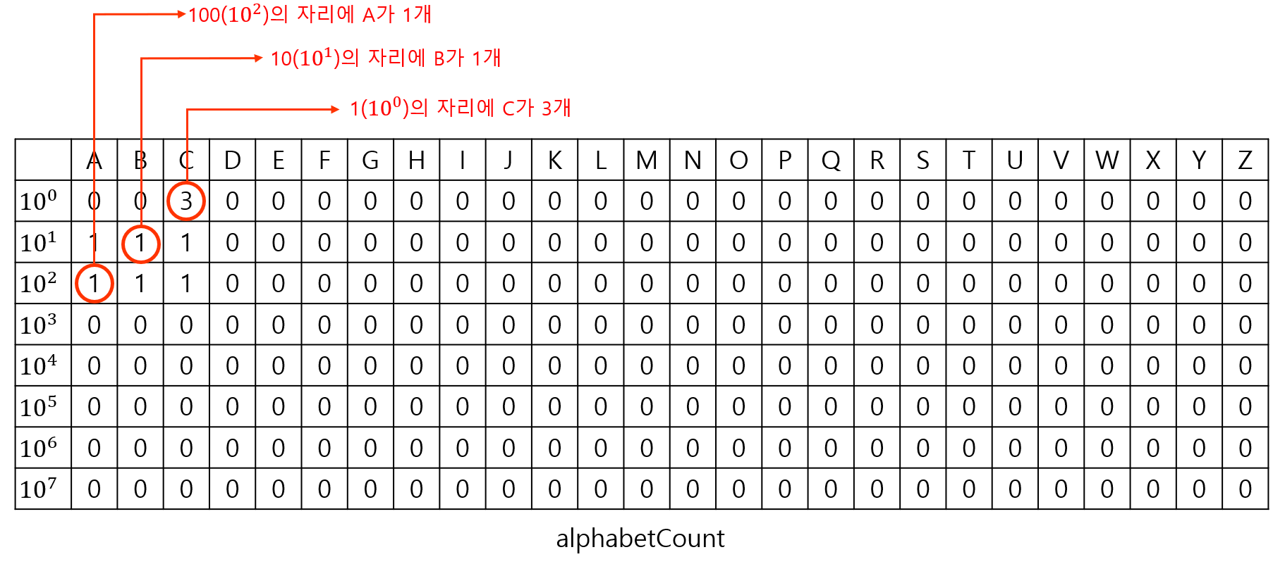 무조건 높은 자리에 있는 알파벳이 큰 수인게 좋은 것이 아니다.